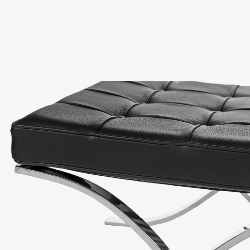 In 1929 Barcelona was host to the World Arts Fair, and the German government commissioned Mies van der Rohe to design the German Pavilion at Montjuic as part of the exposition. Mies van der Rohe also designed the chairs used in it, the iconic “Barcelona chair”. The chairs were the centerpiece of the Pavilion, and they served as thrones for the King and Queen of Spain when they visited. In 1950, the Barcelona Chair was redesigned in 1950 using stainless steel and giving it a smoother appearance. The ivory-colored pigskin which was used for the original pieces was replaced by Bovine leather.