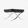Struttura in acciaio piatto cromato. Cinghie in cuoio. Seduta in gommapiuma espansa rivestita in pelle. MADE IN ITALY