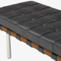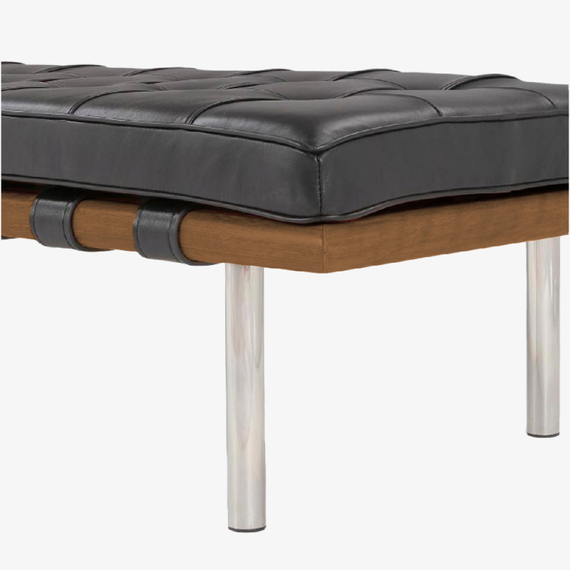 In 1929 Barcelona was host to the World Arts Fair, and the German government commissioned Mies to design the German Pavilion at Montjuic as part of the exposition. Mies also designed the chairs used in it, the “Barcelona chair”. The chairs served as thrones for the King and Queen of Spain when they visited. The Barcelona bench is an extension of the collection, following the same design principles.