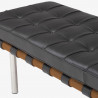 Bench with solid hardwood frame and suspension of heavy leather straps. Legs in chrome-plated tubular steel. Mattress in expanded foam and dacron covered with stitched leather squares. MADE IN ITALY.