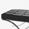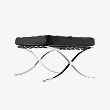 Stool with frame in chrome plated flat bar steel. Suspension is heavy leather straps.Seat in expanded foam covered with leather. Barcelona Ottoman MADE IN ITALY.