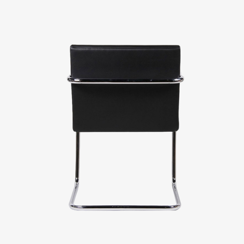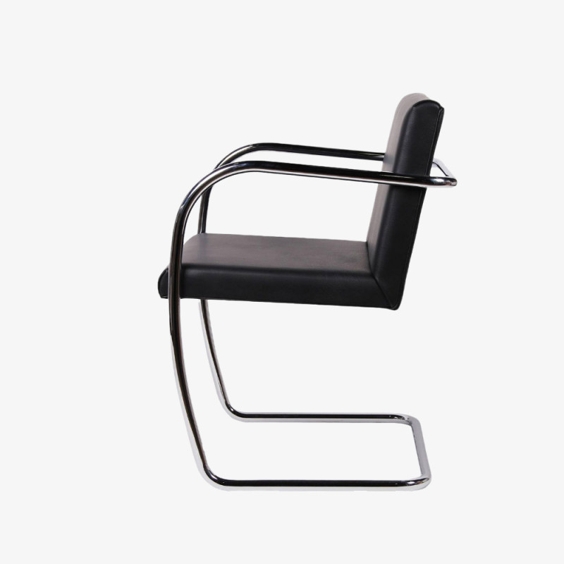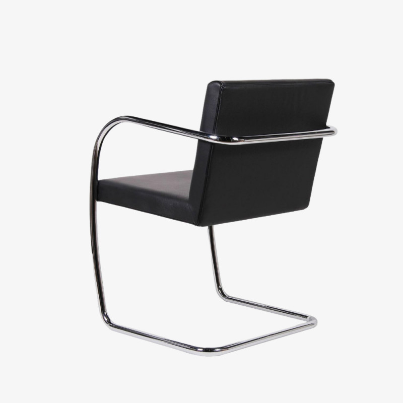 Chair made of high quality chrome-plated tubular steel frame. Elaborate upholstery on hardwood frame with down inlay on the seat cushions. Cover in Verona or Liguria leather. BRNO CHAIR MADE IN ITALY.