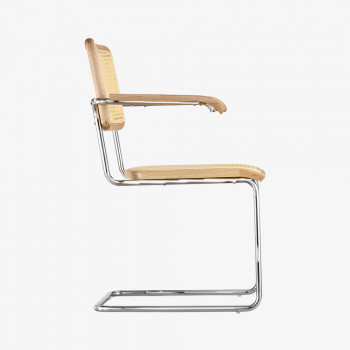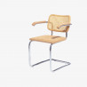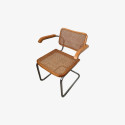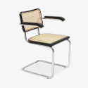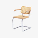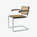 Arm chair with frame in chrome plated tubular steel. Seat and back of natural or black laquered beechwood with machine-caned insets. (min. order 2 pices) CESCA CHAIR MADE IN ITALY.