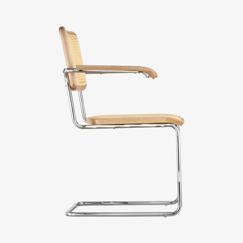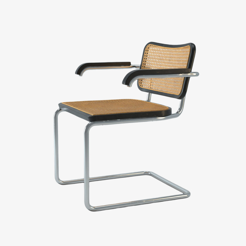 Marcel Breuer’s next revolutionary design after the Wassily Chair was the Cesca Chair. Cesca chair, named after his daughter Francesca, marries user-friendly caning and hardwood Beech with the industrial-age aesthetic of cantilevered tubular steel. Functional, simple and distinctly modern. Cesca chair has no legs and it relies on supporting from the tensile properties of steel tubing. It uses non-reinforced steel tubing, thereby creating a free-swinging chair that approached his ideal of “sitting on columns of air.”