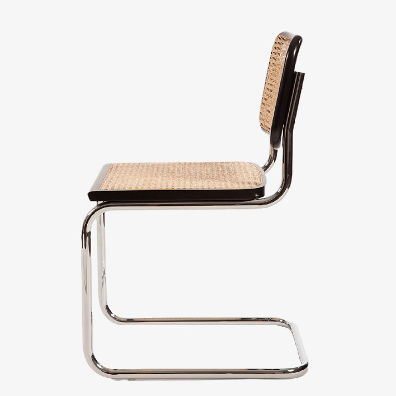 Marcel Breuer’s next revolutionary design after the Wassily Chair was the Cesca Chair. Cesca chair, named after his daughter Francesca, marries user-friendly caning and hardwood Beech with the industrial-age aesthetic of cantilevered tubular steel. Functional, simple and distinctly modern. Cesca chair has no legs and it relies on supporting from the tensile properties of steel tubing. It uses non-reinforced steel tubing, thereby creating a free-swinging chair that approached his ideal of “sitting on columns of air.”