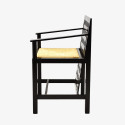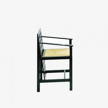 Lacquer painted black solid ash wood chair frame, with armrest. Rush-upholstered seat. MADE IN ITALY.