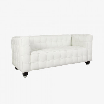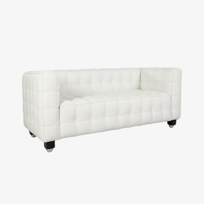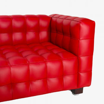 Hofamt later continued the great success of the Kubus armchair in a two-seater and a three-seater sofa. The extended series consisted of a hardwood base frame and upholstery made of black leather squares, just like the single-seater designed first. However, versions in white, yellow, and burgundy red are also known from this period. This sofa is not only characterized by the cubic shape and the checkerboard-like arrangement of the leather pieces, which are processed using a special sewing technique, but also by the special seating comfort. Thanks to the timeless style, this sofa is more modern than ever even after a century.
