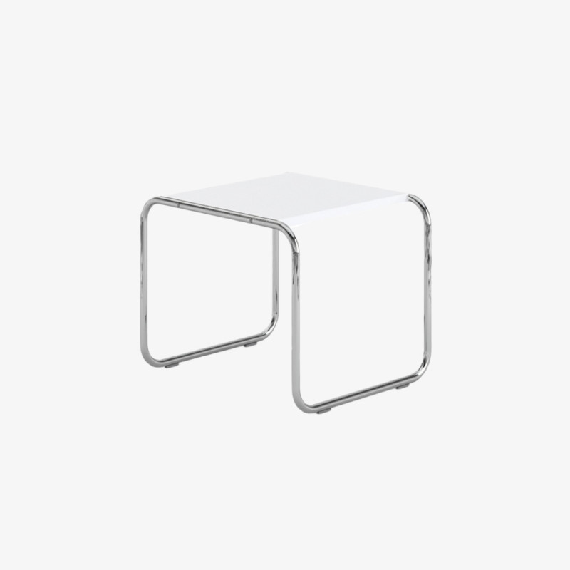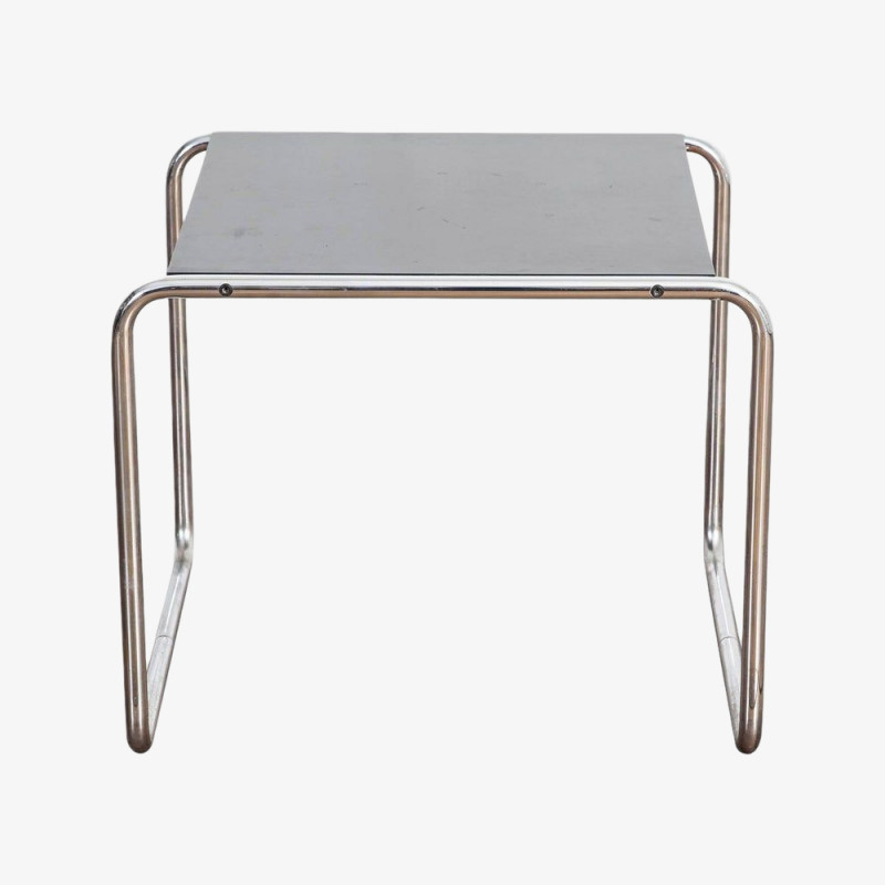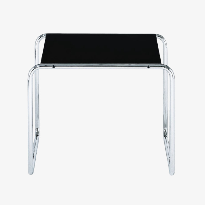 Marcel Breuer has been experimenting with steel tube for years, while developing his cantilever chairs. As part of this process, he designed a set of stools, which were used as tables later or the famous laccio table. As a Bauhaus apprentice in 1925, Marcel Breuer conceptualized the low table as a companion to the Wassily chair, the first tubular steel design based on the tubed frame of a bicycle.