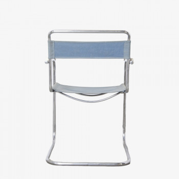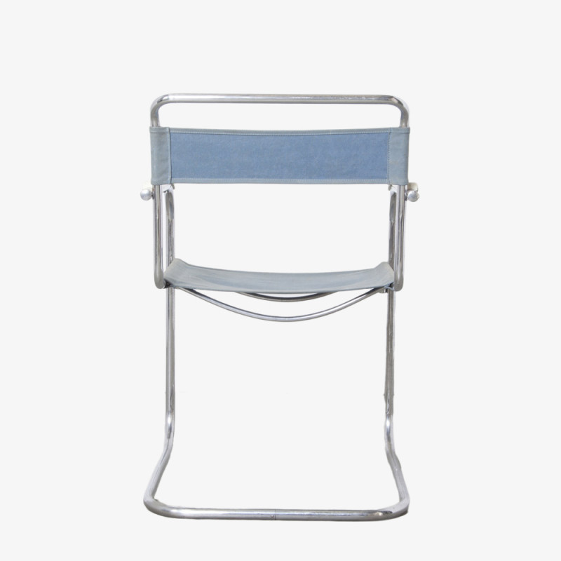 In 1925 the Dutch architect Mart Stam, at that time living in Berlin, developed a chair without any back legs that relied instead on the strength of a single twisting piece of piping to support and counterbalance the weight of a seated person.