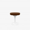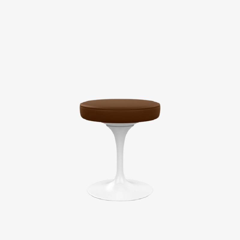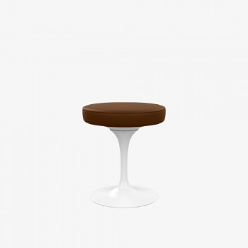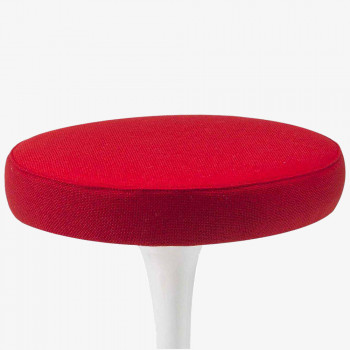Eero Saarinen has designed the chromed stool with "tulip" shape, which is supplied with a swivel base in lacquered cast aluminum and seat upholstered in polyurethane and covered in fabric or leather.